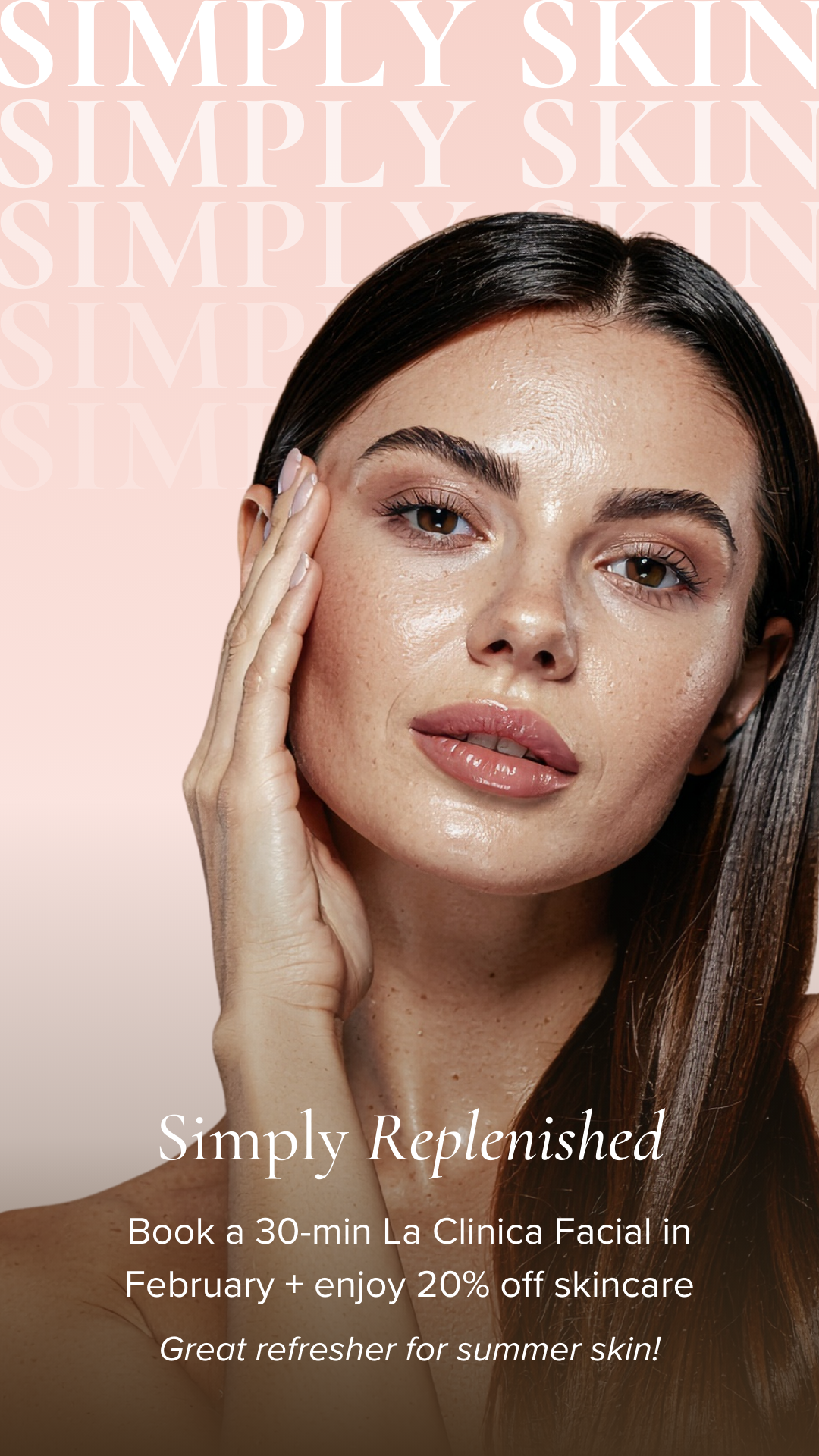 Book a 30-minute La Clinica Facial in February and enjoy 20% off skincare on the day of your appointment.