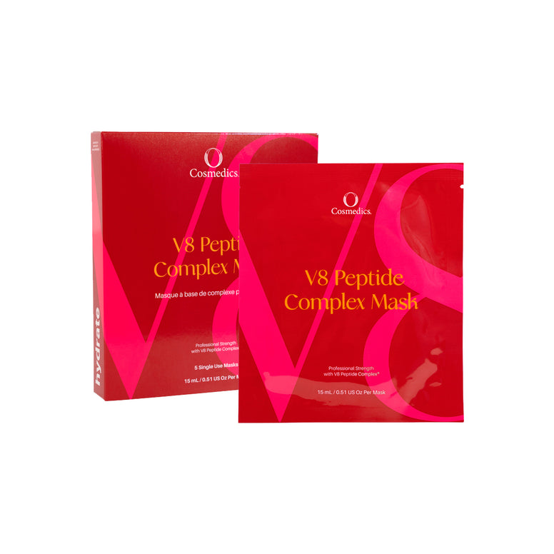 Cleanse thoroughly with your favourite O Cleanser and pat dry. Apply and secure the V8 Peptide Complex Mask on the face and leave the mask on for 15-20 minutes.